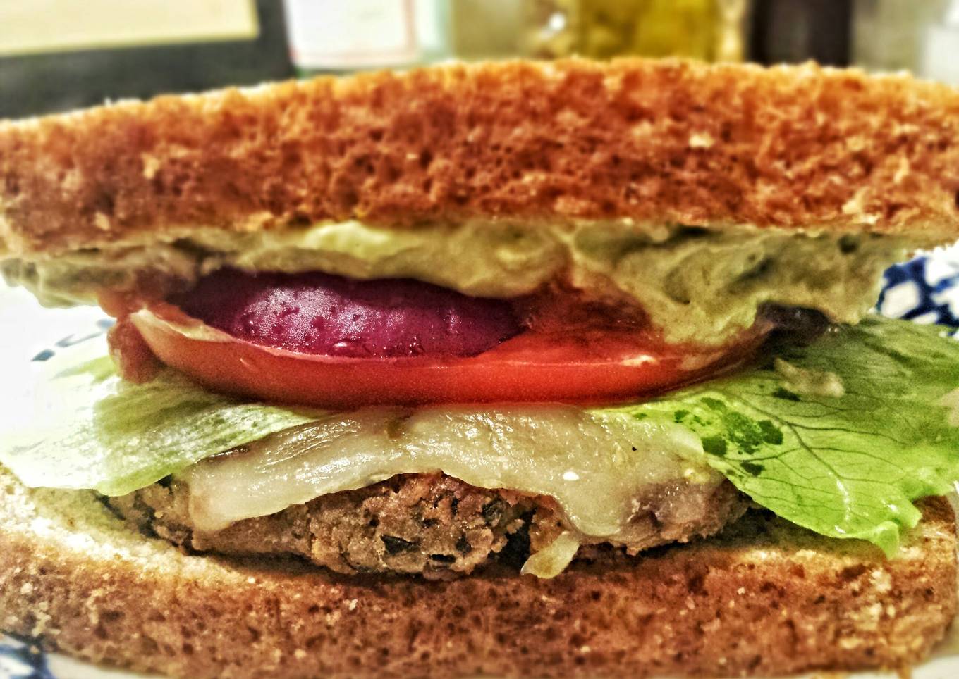 - Assemble the sandwich. Spread a thin layer of Avocado Spread on 2 bread slice, place your patty, top with tomato slice, leaf of lettuce, and 2-slice of onion. Add a dollop of Salsa for a nice kick!