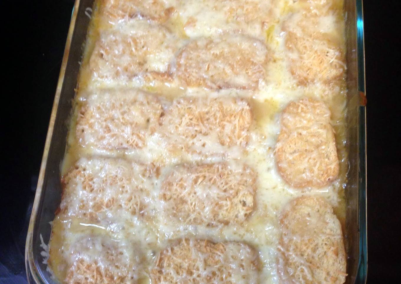 As for the number of servings that can be served to make French Onion Soup Casserole is 6 servings. So make sure this portion is enough to serve for yourself and your beloved family.