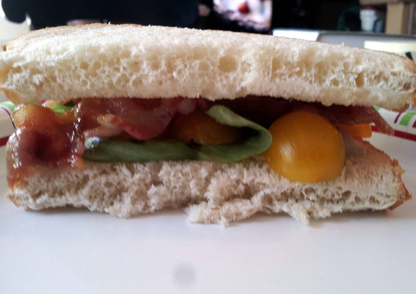 Bacon and Basil Sandwich with Goat Cheese Brie and Golden Tomatoes