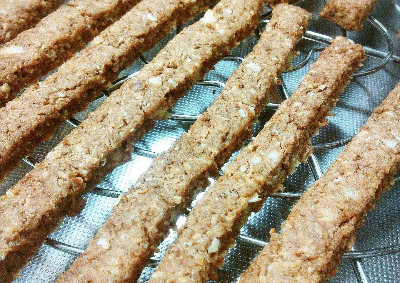 This is a variation on my recipe for sake lees crunchy snack sticks. They are made with cinnamon and nuts, my favorite ingredients.
