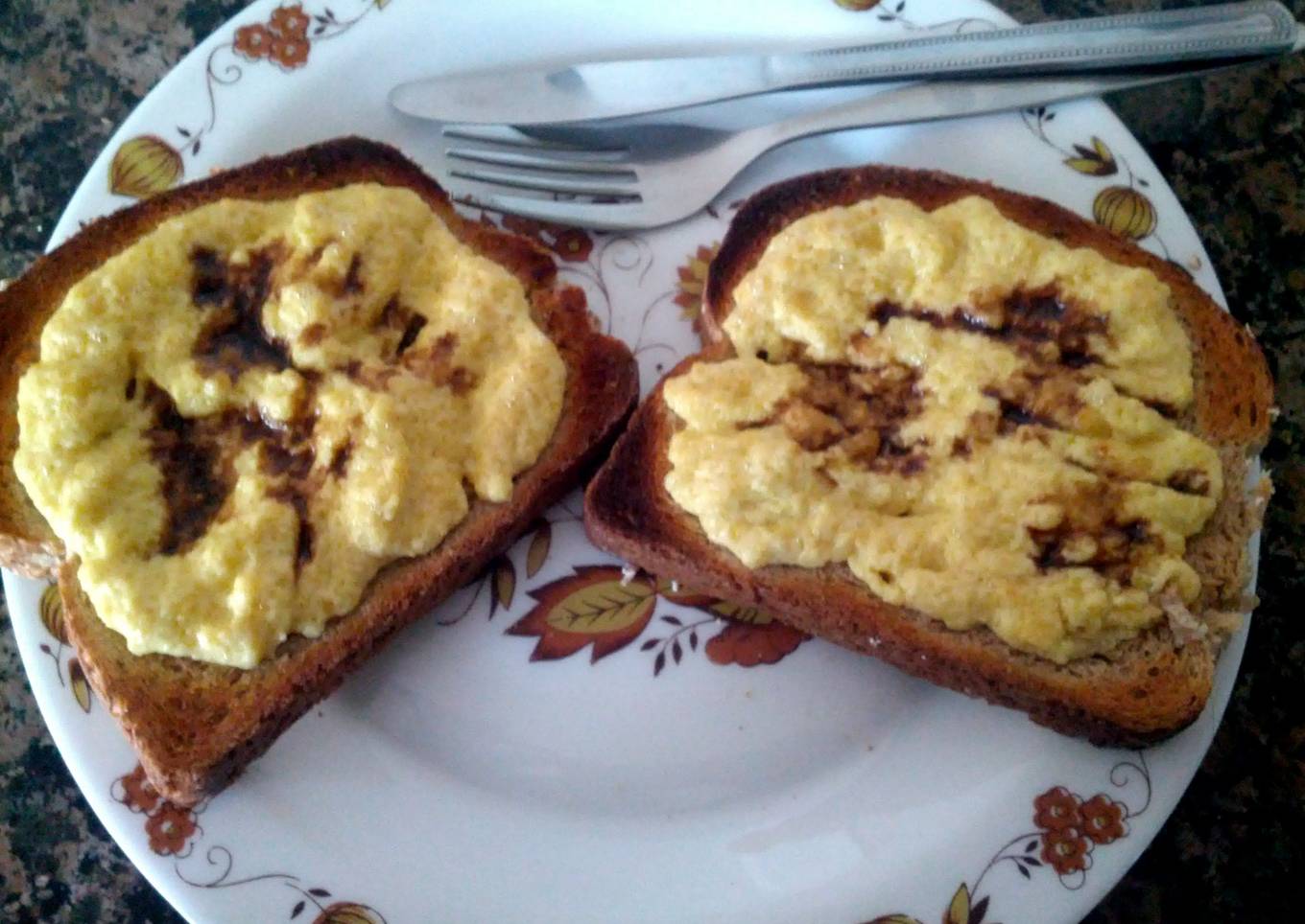 My mother's recipe, made specially for me as I couldn't stomach eggy textures or flavours. The consistency resembles a creamy scrambled egg rather than the traditional Welsh cheese on toast and is cheesy and fluffy.
