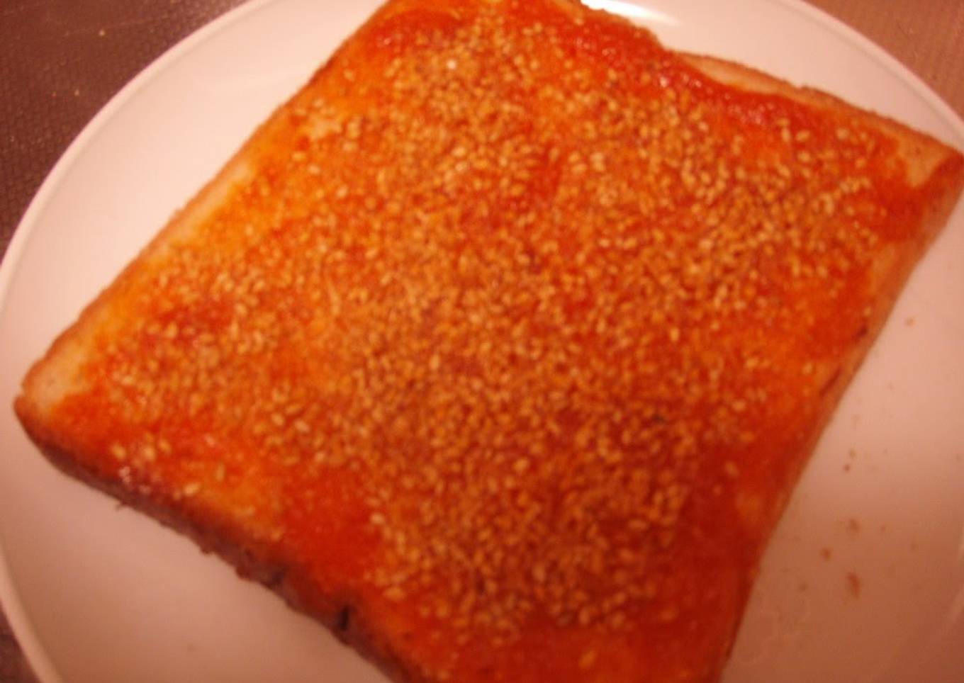 - Mix well, then spread on bread. Sprinkle with as much sesame seeds as you prefer.